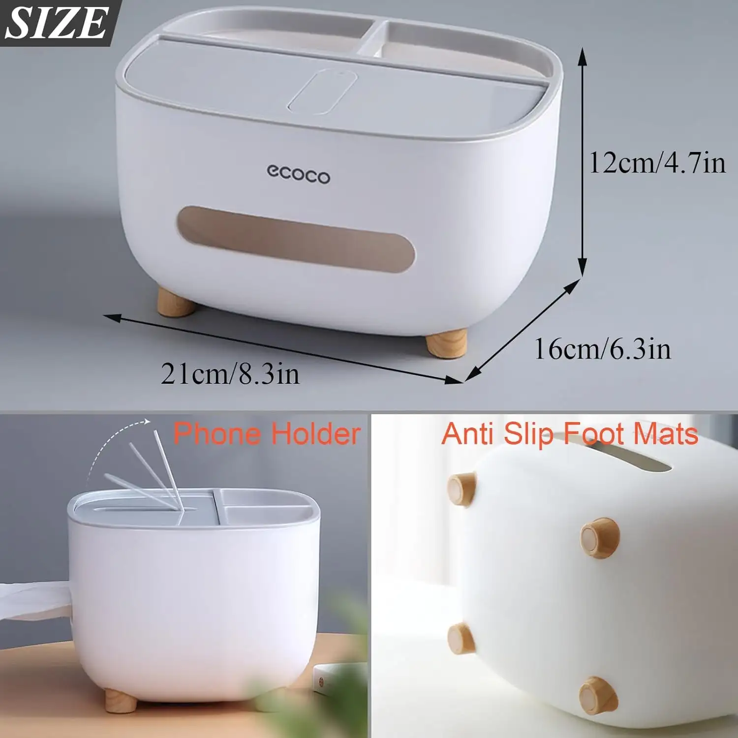 a multifunctional tissue storage box for use in your bedroom or office. Get a product of high quality and elegant design to match your place decor. This storage box is perfect for storing tissues and other small items. Make your life more organized with this practical and modern solution. Get it now from PRIME SHOP ️ Enjoy the style and effectiveness of the product. Perfect for home, living room, bedroom, study, office, car interior use. 1. Simple design, novel and cute, high-foot design, suitable for drawing paper boxes placed on the desktop. 2. Multifunctional tissue box, in addition to placing tissues, it also has a storage function, which is used to store small items such as keys and remote controls. 3. Concealed lid opening handle, just press it lightly to rotate the arc to open the lid. 4. The top opening handle can also be used as a mobile phone holder. 5. Small size and large space, make the desktop more tidy. Beautiful-looking and functional tissue box keeps your desk organized while keeping tissues within reach. Rectangular Tissue Box Tissue Drawer Tissue Box Holder Facial Tissue Holder for Bathroom Decoration