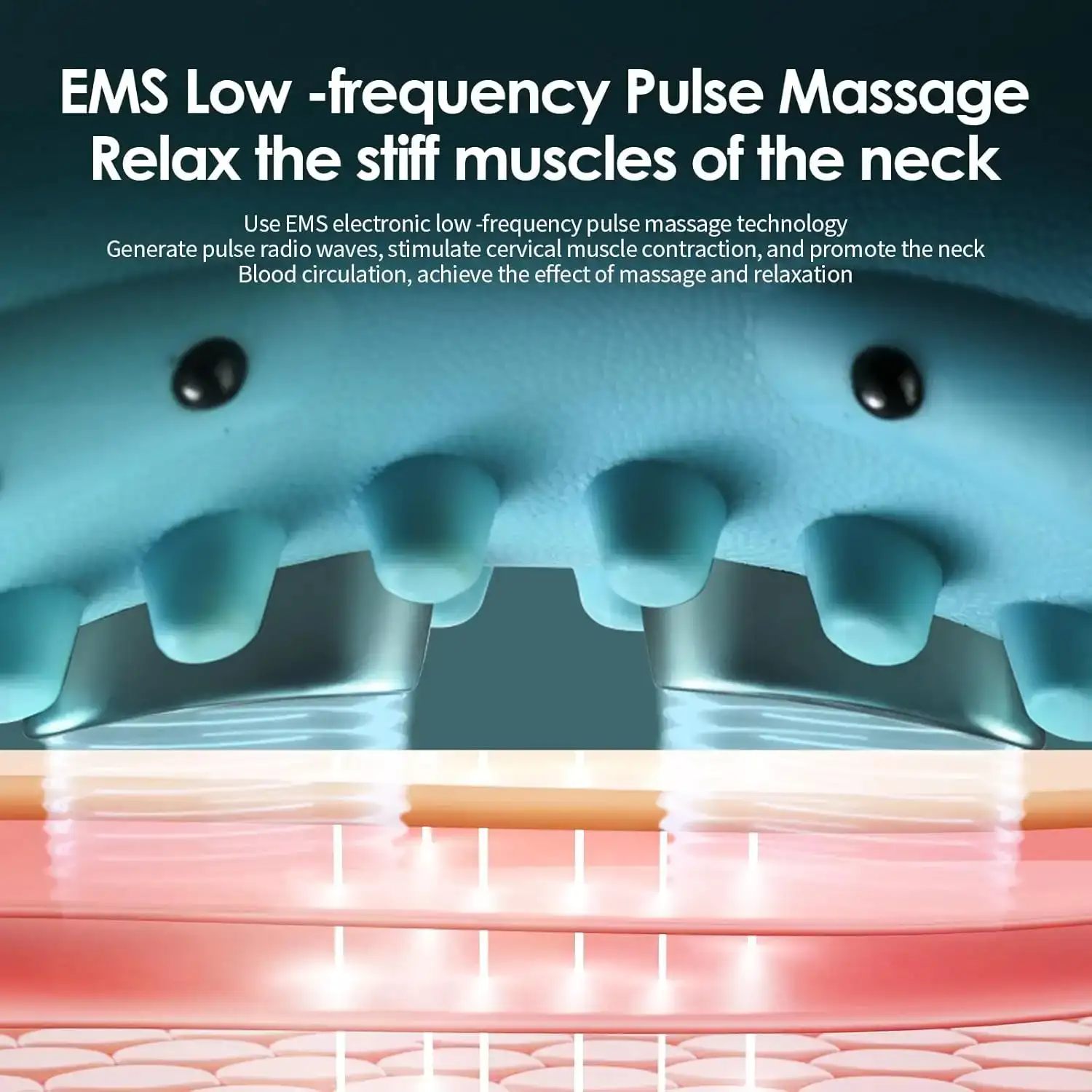 This advanced device offers a powerful combination of 4-in-1 therapy — massage, EMS stimulation, heat therapy, and cervical stretching. Just 15 minutes per day helps restore your neck’s natural curve, reduce chronic stiffness, and improve overall comfort.